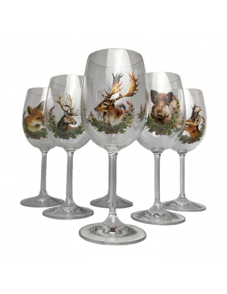 Sada pohárov s poľovníckym alebo rybárskym motívom.