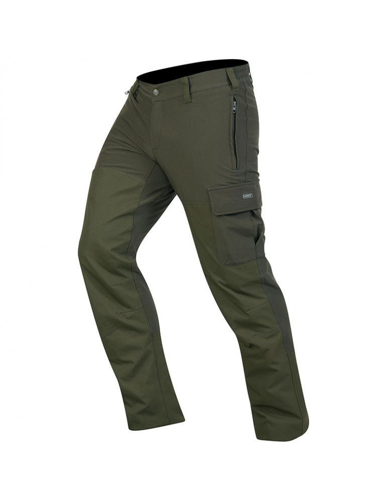 Spevnené, nešušťavé, elastické nohavice. Na nohách spevnené tŕňom-odolným materiálom.