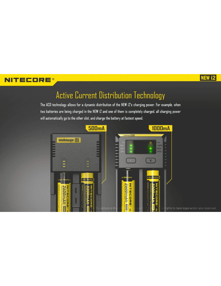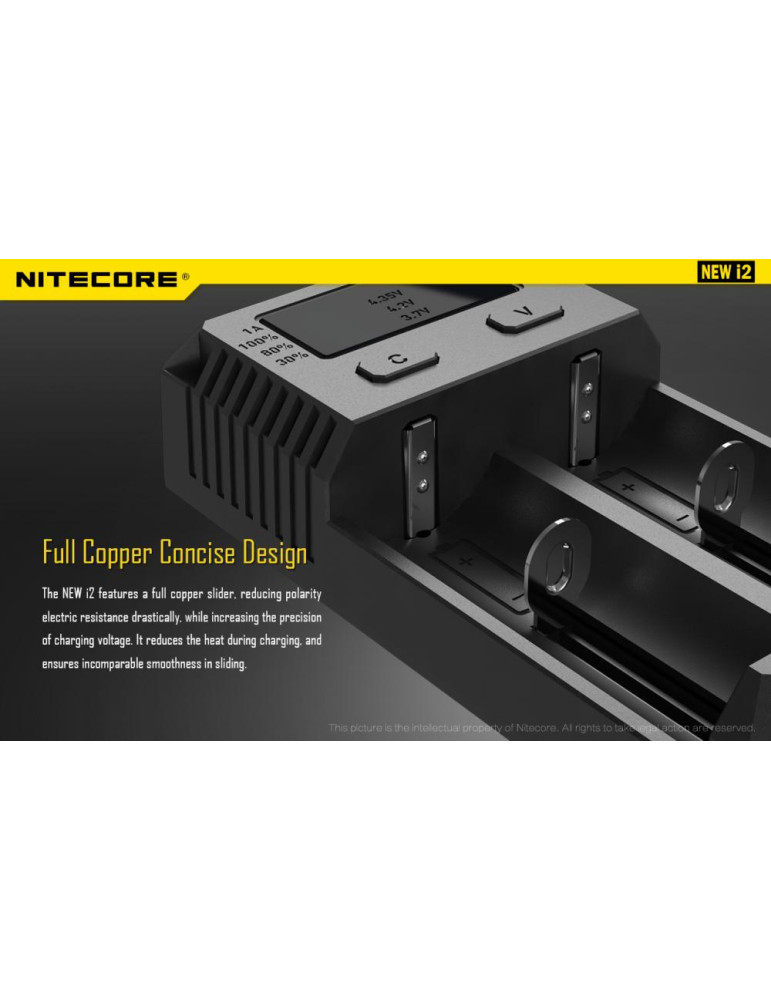 Intellicharge i2 je univerzálna inteligentná nabíjačka, kompatibilná s takmer všetkými typmi akumulátorov, čím sa vyhnete potrebe vlastniť viacero nabíjačiek. Nabíjačka i2 dokáže automaticky rozpoznať Li-ion,Ni-MH a Ni-Cd nabíjacie batérie a aplikovať tak vhodný režim nabíjania.