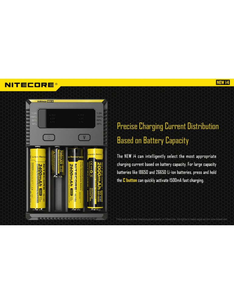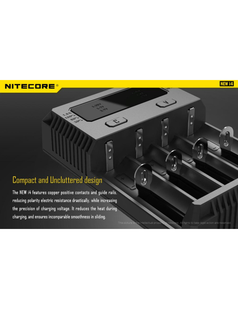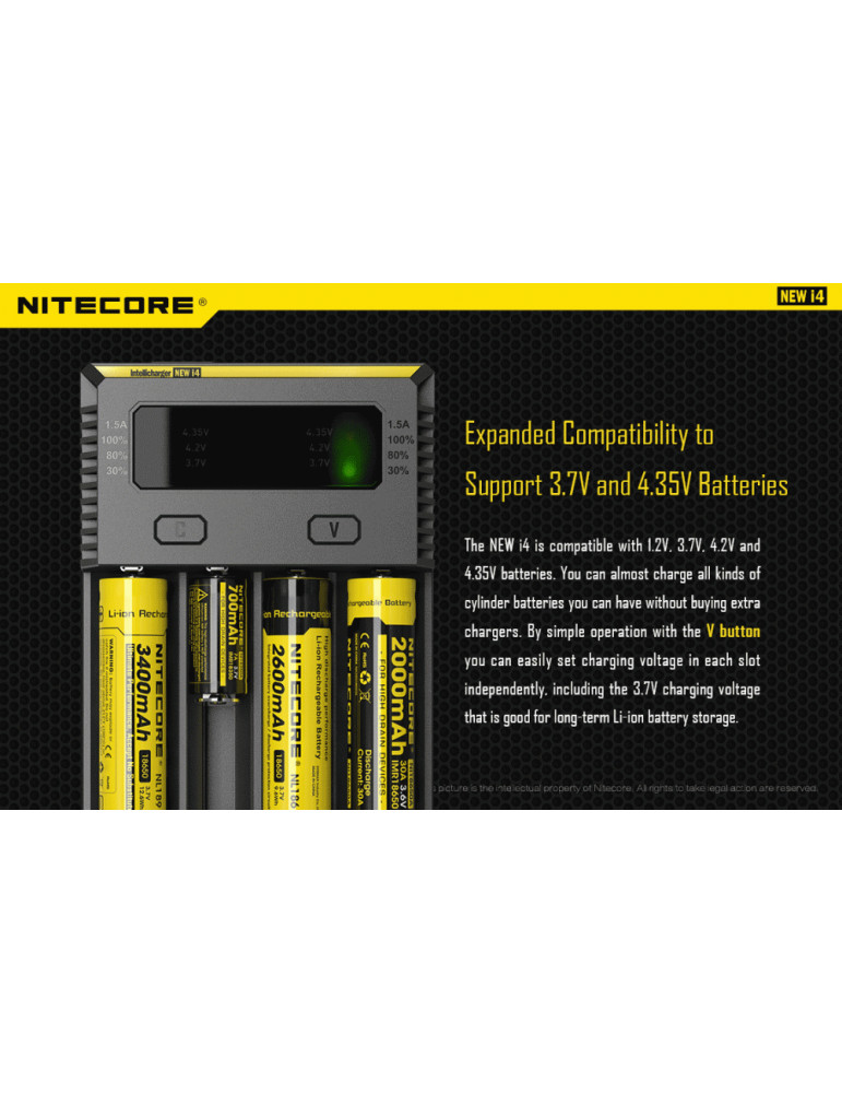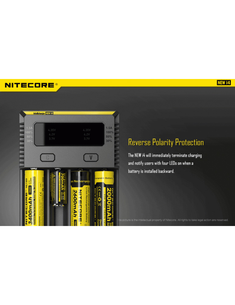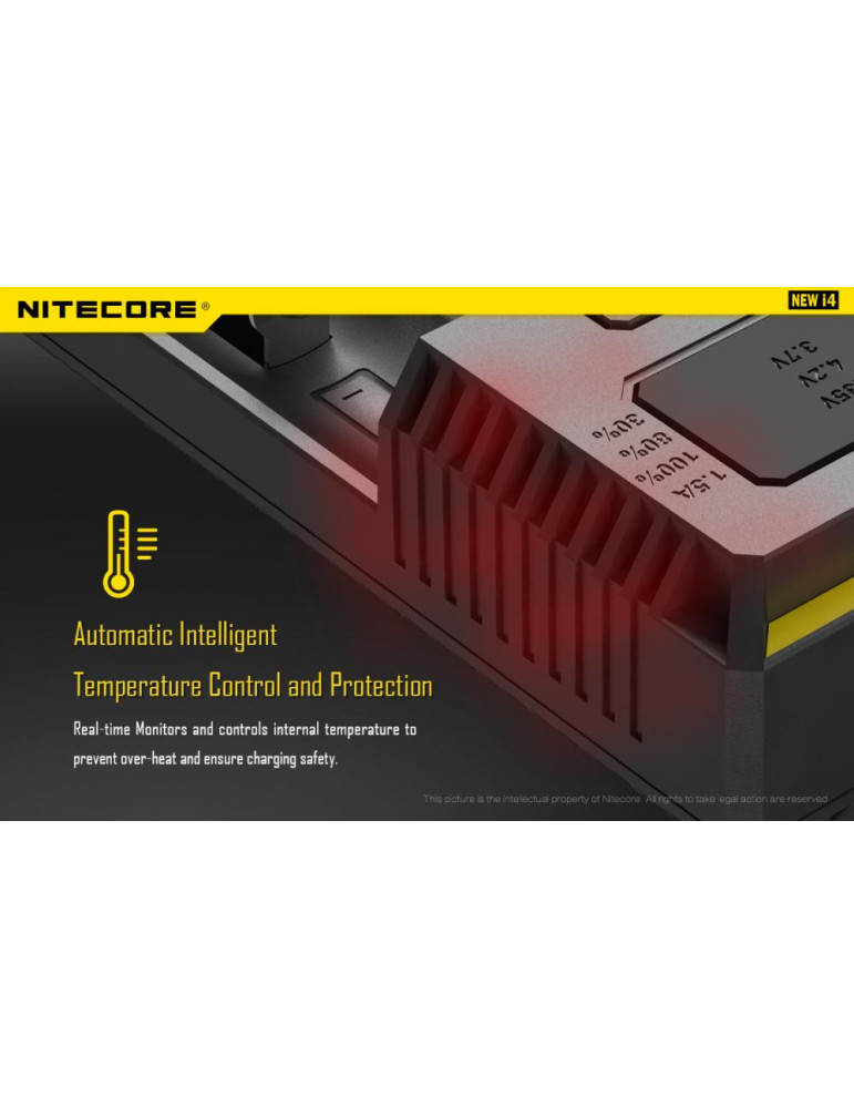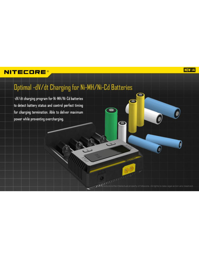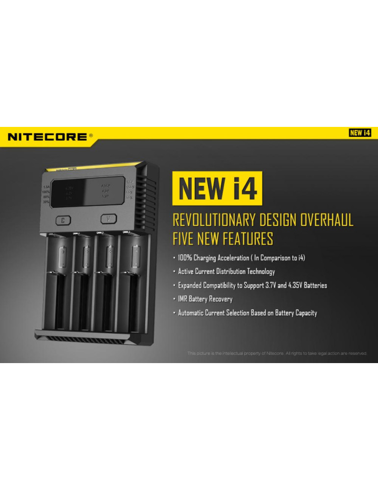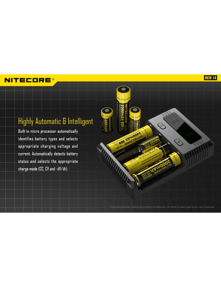 Intellicharge i4 je univerzálna inteligentná nabíjačka, kompatibilná s takmer všetkými typmi akumulátorov, čím sa vyhnete potrebe vlastniť viacero nabíjačiek. Nabíjačka i4 dokáže automaticky rozpoznať Li-ion, Ni-MH a Ni-Cd nabíjacie batérie a aplikovať tak vhodný režim nabíjania.