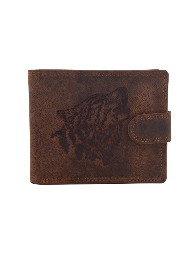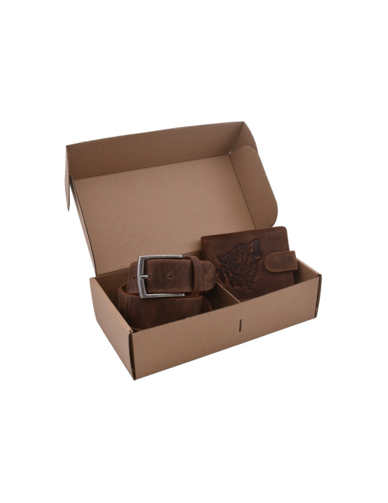 Poľovnícky darčekový set vlk hlava 315 - pánska peňaženka 2911908-20 a pánsky kožený opasok tmavý tan šitý 747