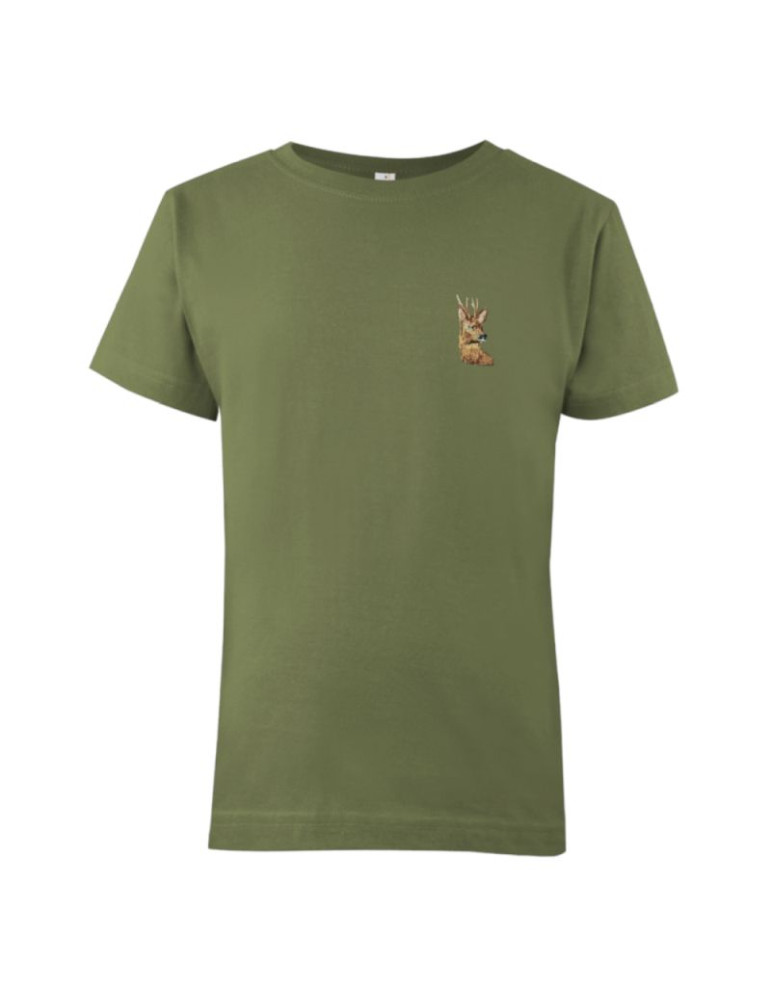 Detské poľovnícke tričko FOREST je vyrobené zo 100% bavlny. Detské tričko je v zelenej farbe. Materiál je pevný, ale zároveň elastický. Vaše deti si ho obľúbia. Tričko je s krátkym rukávom. Je doplnené výšivkou jeleňa.