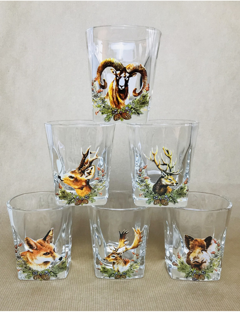 Sada 6 ks pohárov s poľovníckym motívom.Príjemca :