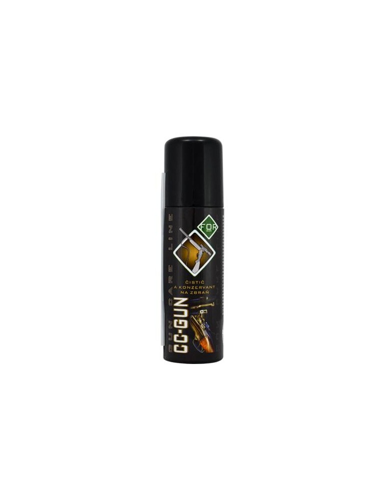 CC-GUN čistič a konzervant na zbraň. Vysoko účinný prostriedok na čistenie a konzerváciu zbrane v jednom kroku. Účinne rozpúšťa a čistí zbraň od zvyškov strelného prachu, medi a olova. Aktívne odstraňuje hrdzu. Prípravok sa chemicky viaže na kov a vytvára antikorozívny film, ktorý je zároveň separačnou vrstvou, ktorá znižuje oter a usádzanie zvyškov strelného prachu v hlavni, a tým uľahčuje ďalšie čistenie. Vďaka výbornej mazacej schopnosti prípravok CC-GUN znižuje opotrebenie pohyblivých častí zbrane, a tak predlžuje životnosť zbrane.