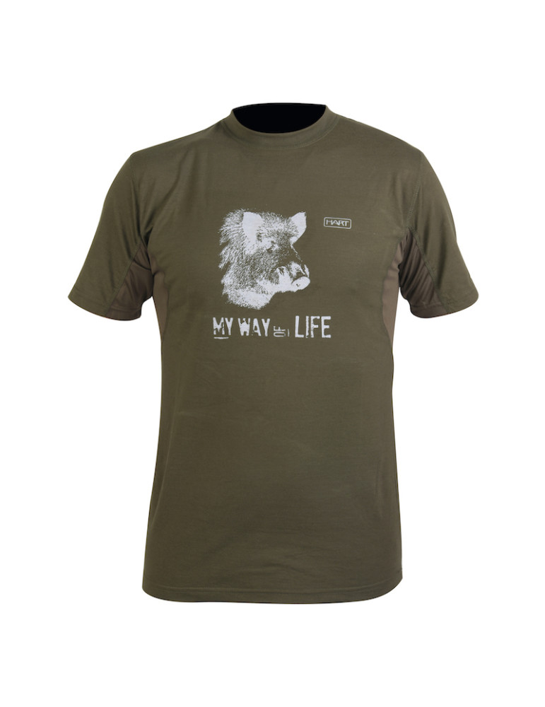 Športové a praktické HART tričko s dizajnovou potlačou diviaka a nadpisu - MY WAY OF LIFE - môj spôsob života.